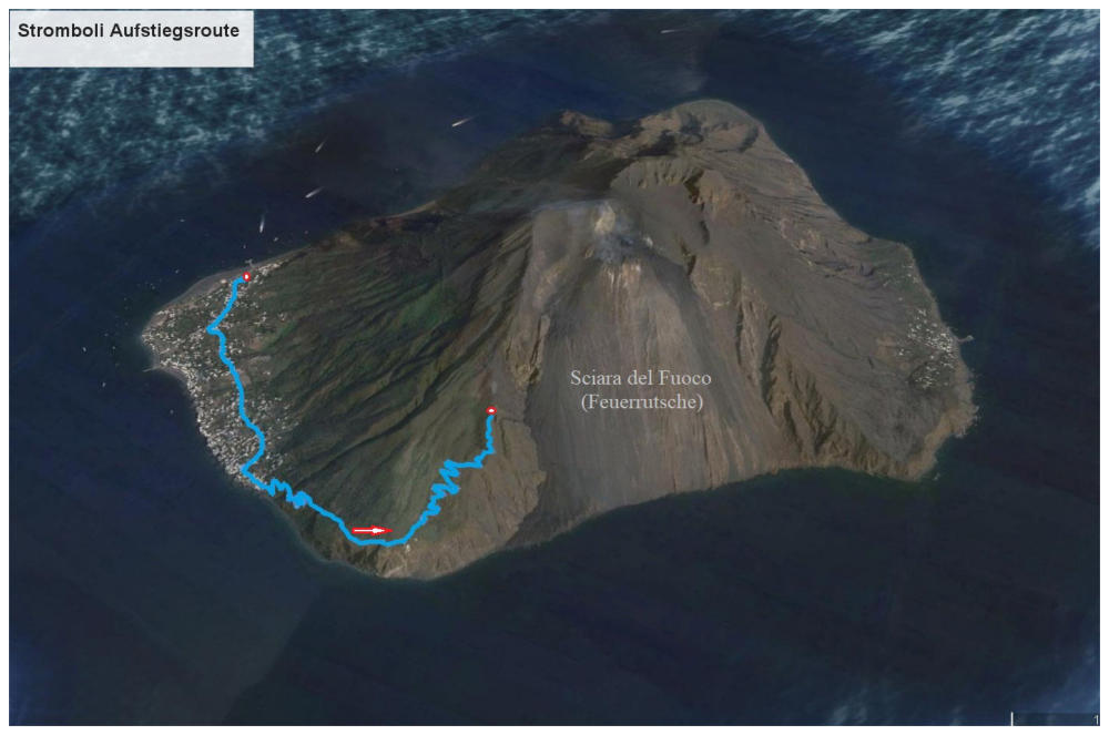 des Vulkans Stromboli etwa 3000 Meter auf.